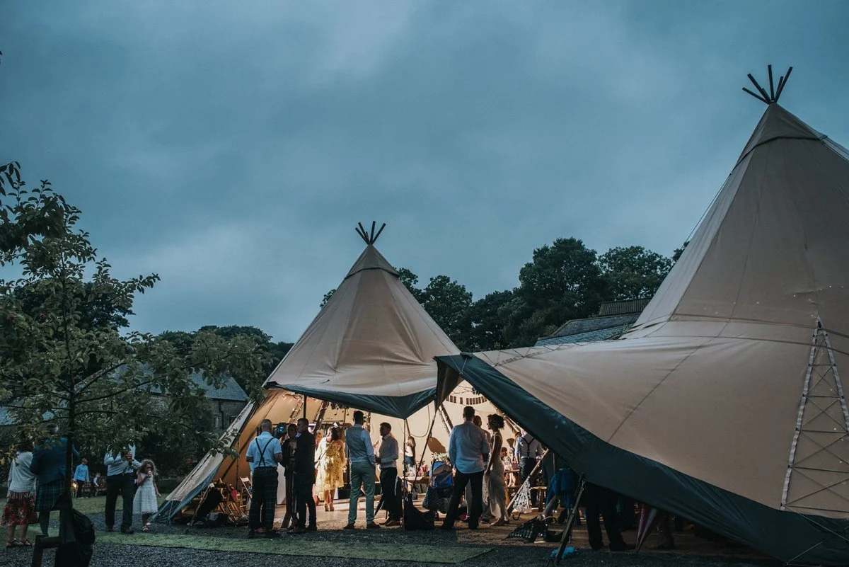Continuing the wild outdoorsy theme for their wedding, they hosted their celebrations in the idyllic grounds of Pengenna Manor, which housed two stunning giant hat tipis, while the meadow was scattered with luxury bell tents as their guests' accommodation. 'Guests arrived on the Friday to move into their bell tents and we cooked up a big barbecue, played games and generally got merry,' says Leigh-Anne of their wedding weekend.