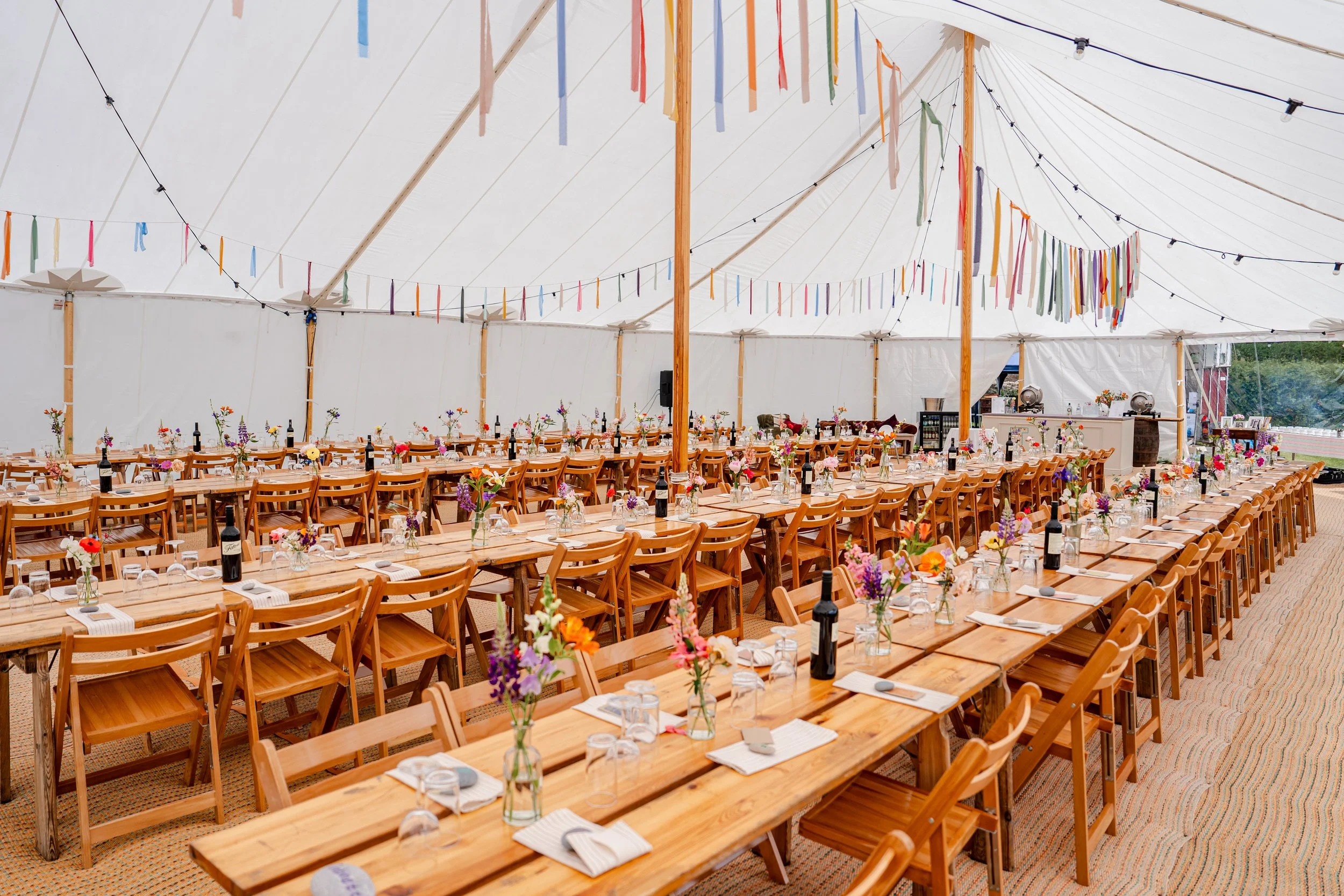 Our tip: High-quality sailcloth hire in Devon means a beautifully styled setup that stands up to wind, rain, and even chillier months. Add in furniture, heating, and creative lighting and your guests will never want to leave.