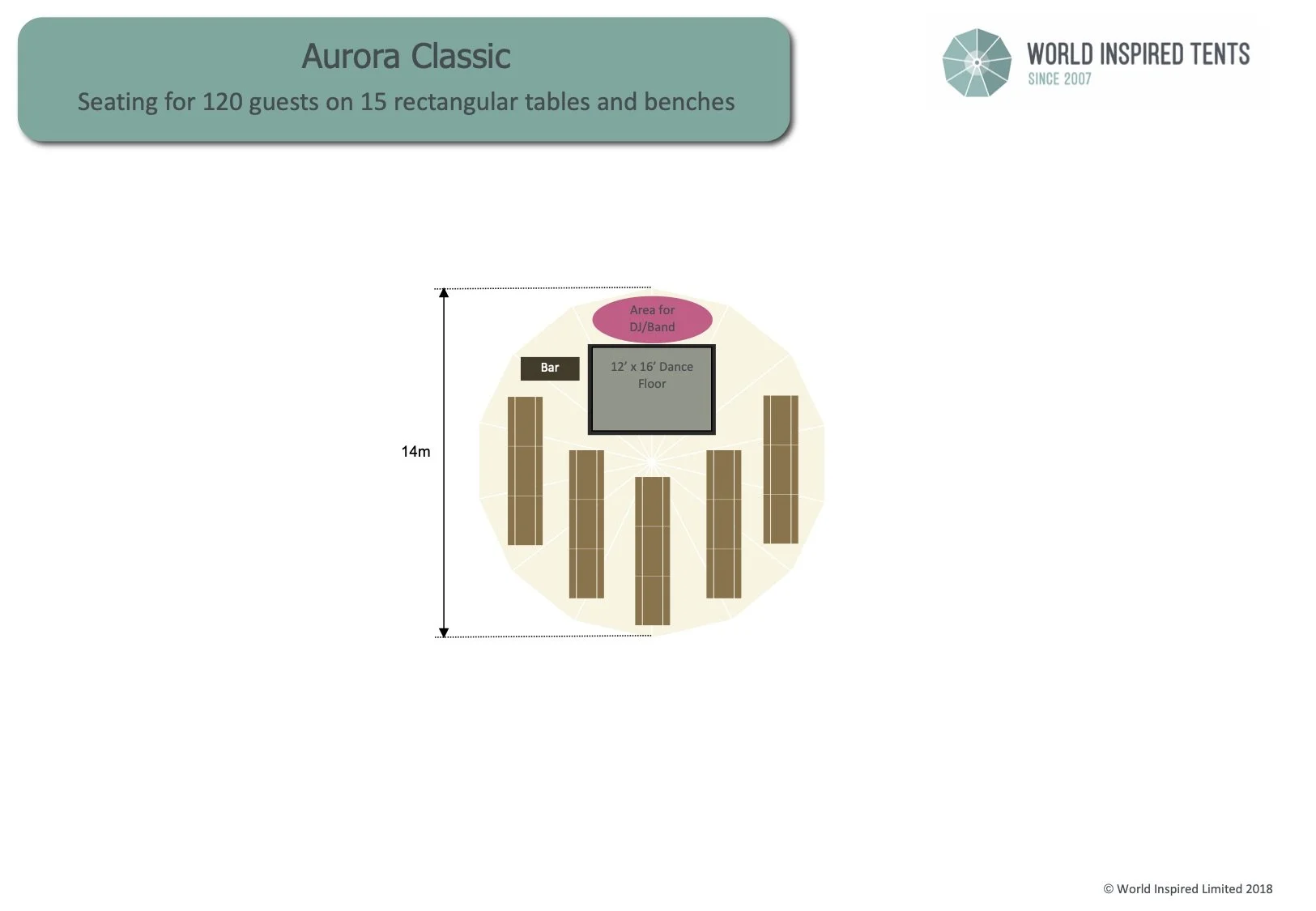 The Aurora Classic is the smallest option in our sailcloth range, designed to accommodate up to seated 120 guests.
