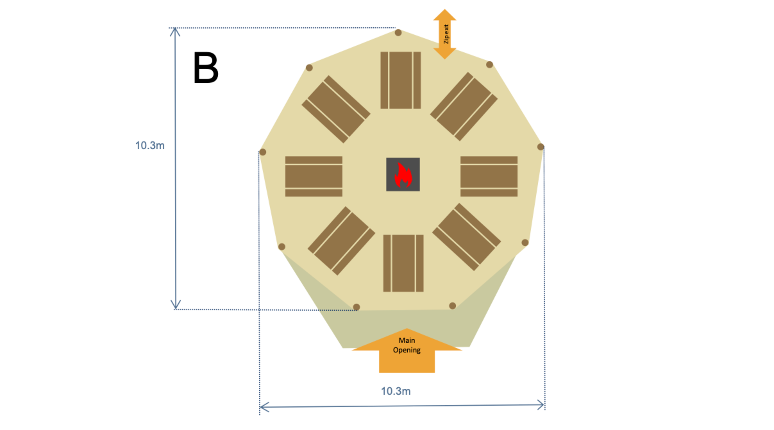 Single Giant Hat Tipi - Option B 11 Mar Written By Hayley . 72 guests on rectangular tables and benches and fire pit. Hayley .