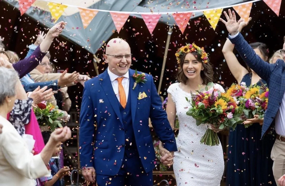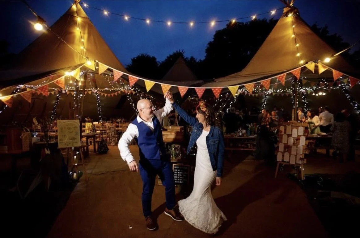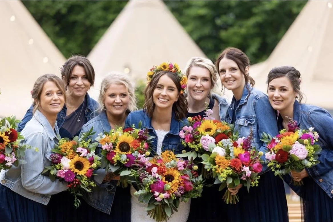 Bethany and Adam’s wedding at Gilestone Farm provided the perfect setting for their special day. The tipis were decorated with bright flowers, colourful bunting, and a DIY flower arch, reflecting the couple’s style and personalities. These vibrant and fun details helped create an unforgettable celebration, making their day truly memorable.
