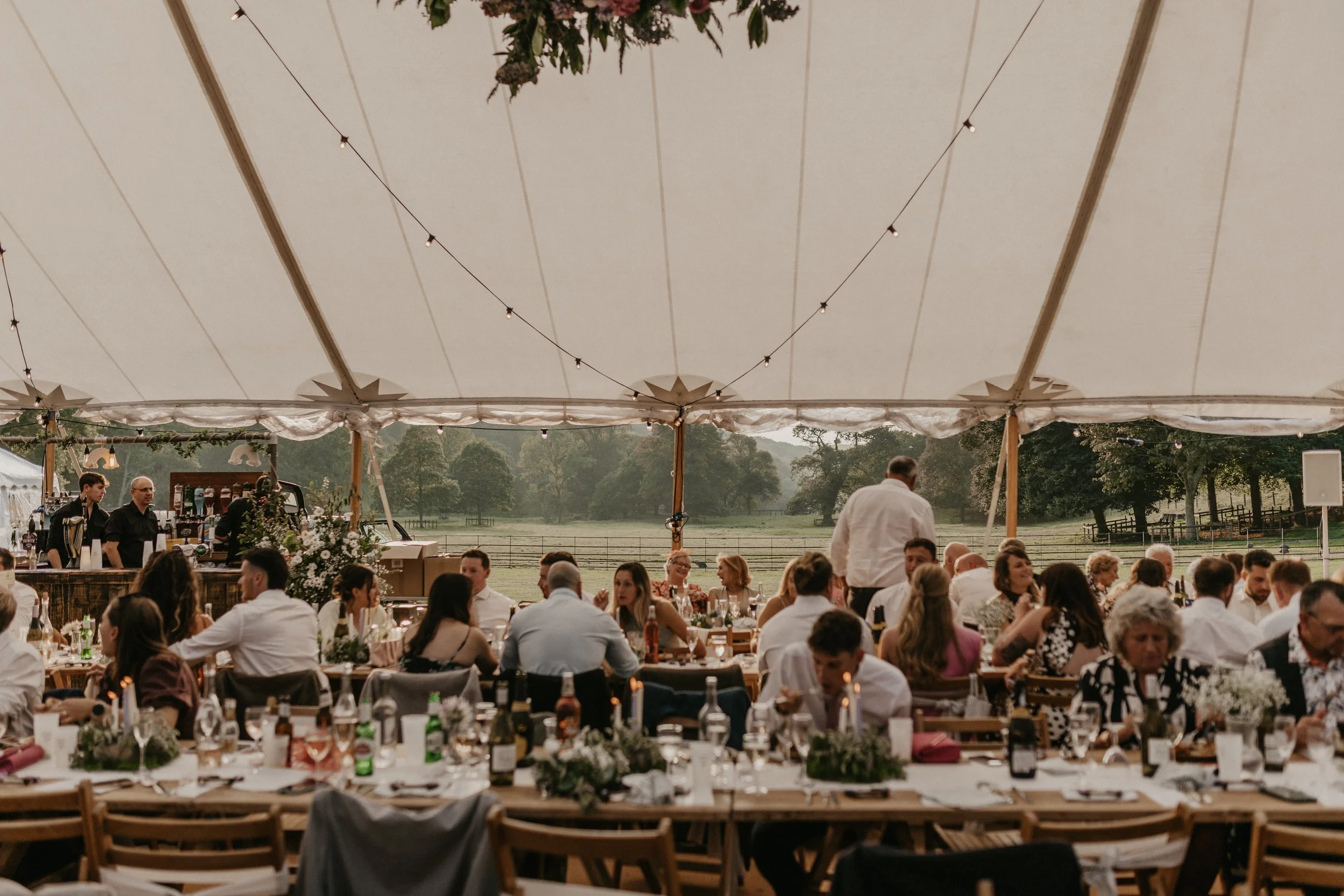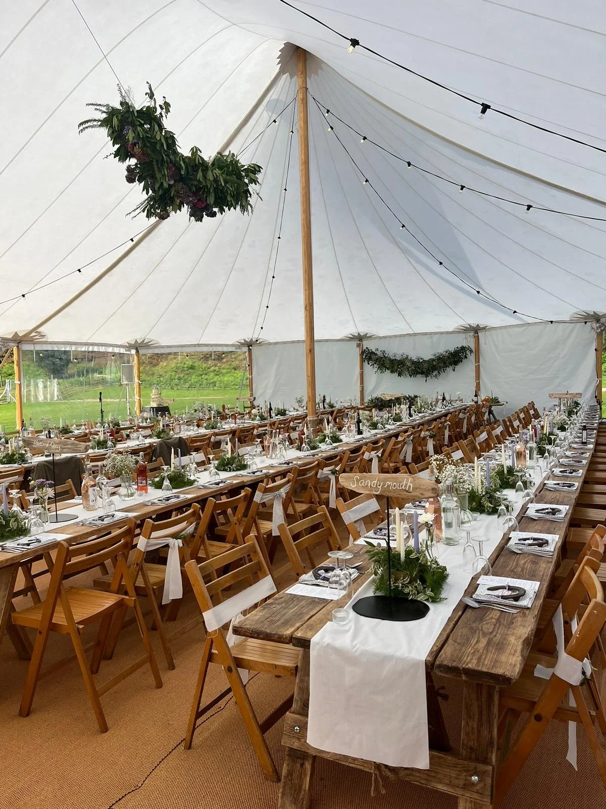 Can you get a more beautiful location for a wedding? Georgina & Billy’s sailcloth celebration at the stunning Hartland Abbey was nothing short of magical. With the historic abbey as their backdrop and sweeping views across the landscape, the setting was truly picture-perfect. Inside the sailcloth, white table runners, natural foliage, and rustic wooden tables created a beautifully relaxed vibe. We absolutely loved everything about their day — the vibe, the styling, and the setting! Thank you for choosing our sailcloth for your special day.