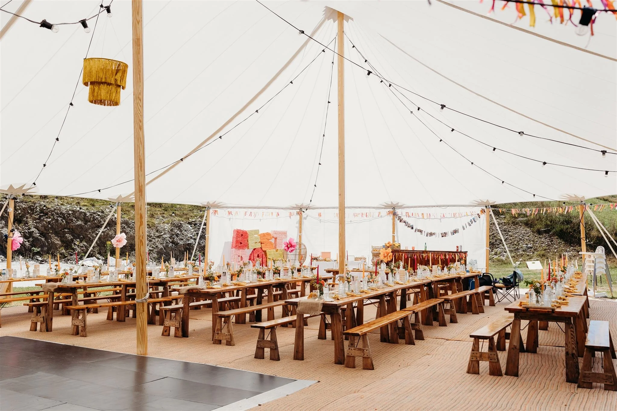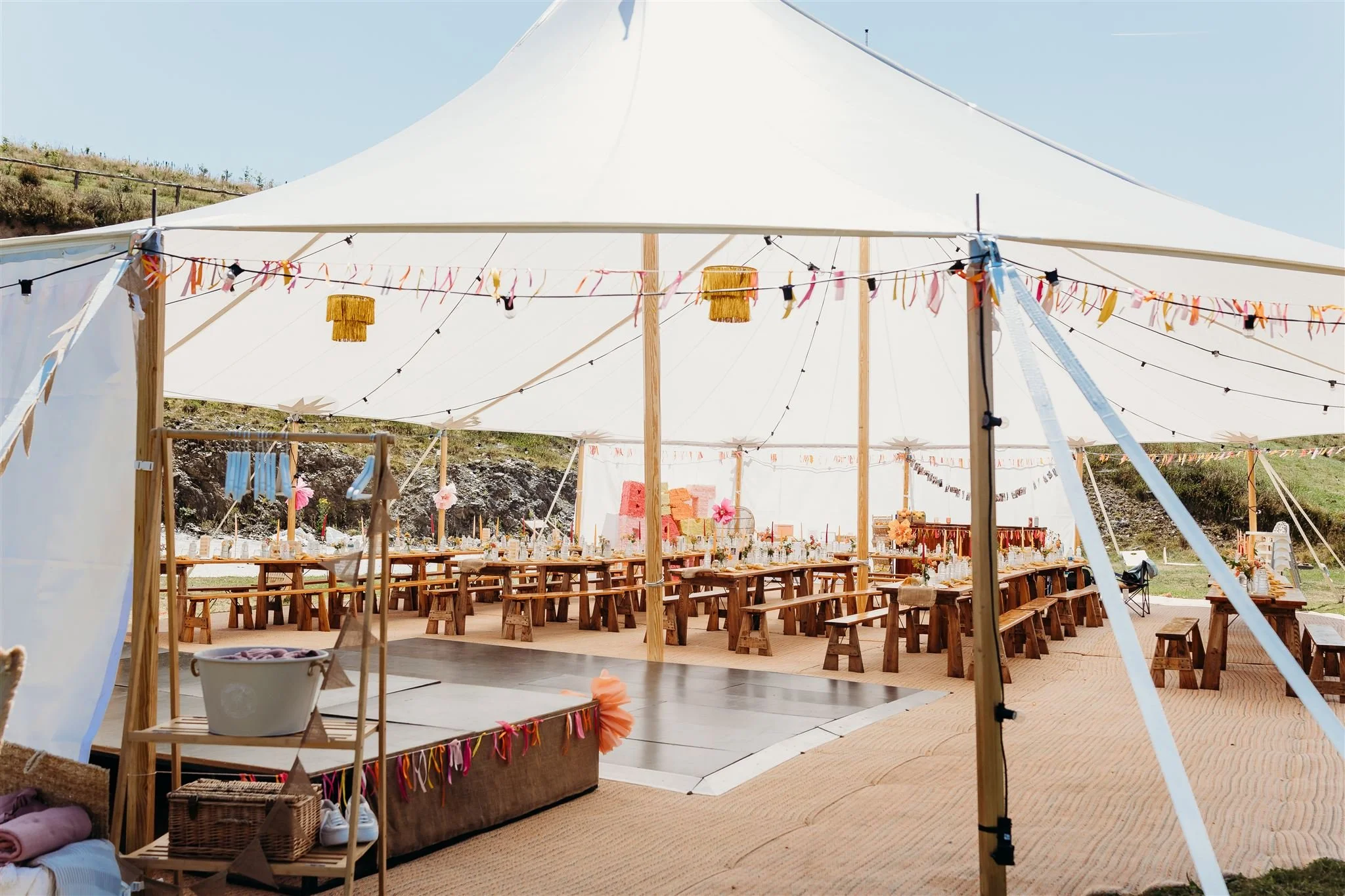 Kathy and Marcus had a beautiful wedding at The Venue at Coxleigh. They hired our 2-pole sailcloth marquee, and it looked absolutely stunning, creating the perfect setting for their special day. From the elegant setup to the lovely atmosphere, everything came together so beautifully. Thank you so much, Kathy and Marcus, for letting us be a part of your celebration, it was such a pleasure to help make your day so memorable.
